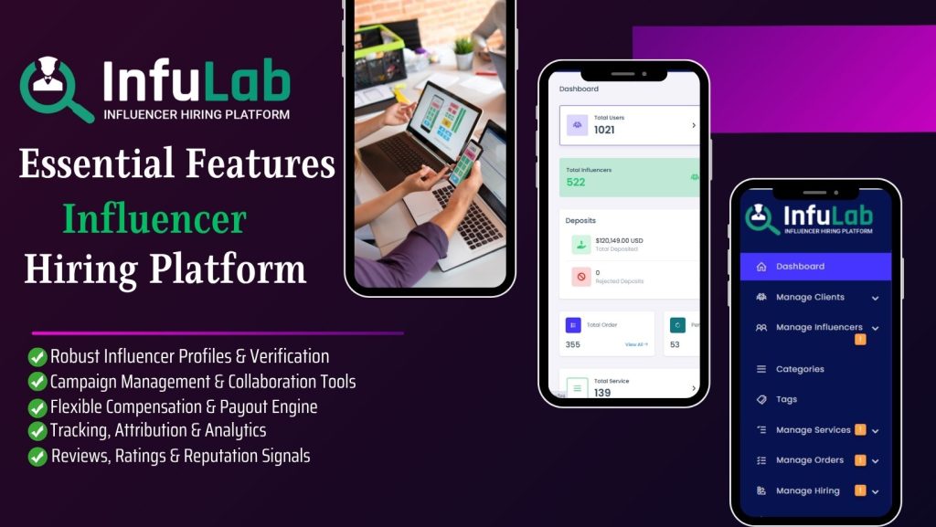 However, the route depends mainly on your business model. Today, I will focus on the essential features of an influencer hiring platform script. You’ll also learn about InfuLab and why this script is worth a try for your influencer market website.
